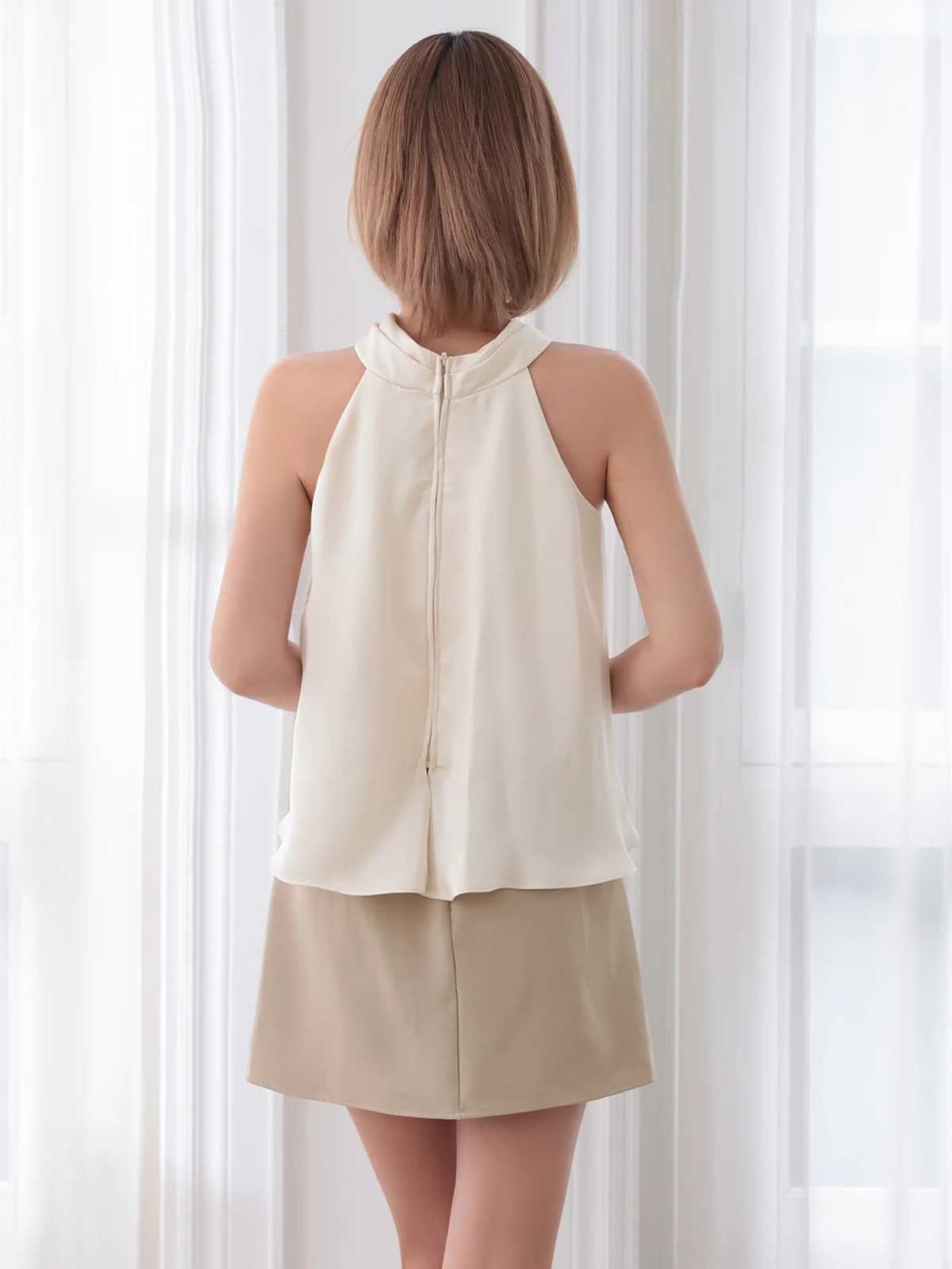 他の画像を見る ヘルシーな肌見せで魅了する♡ 予約商品【4月下旬入荷予定】[IRMA/イルマ] 高級 ブランド Aラインミニドレス 谷間 ホルターネック ドレープ 背中魅せ シフォン フリル ¥ 29,480 税込 お気に入りに追加