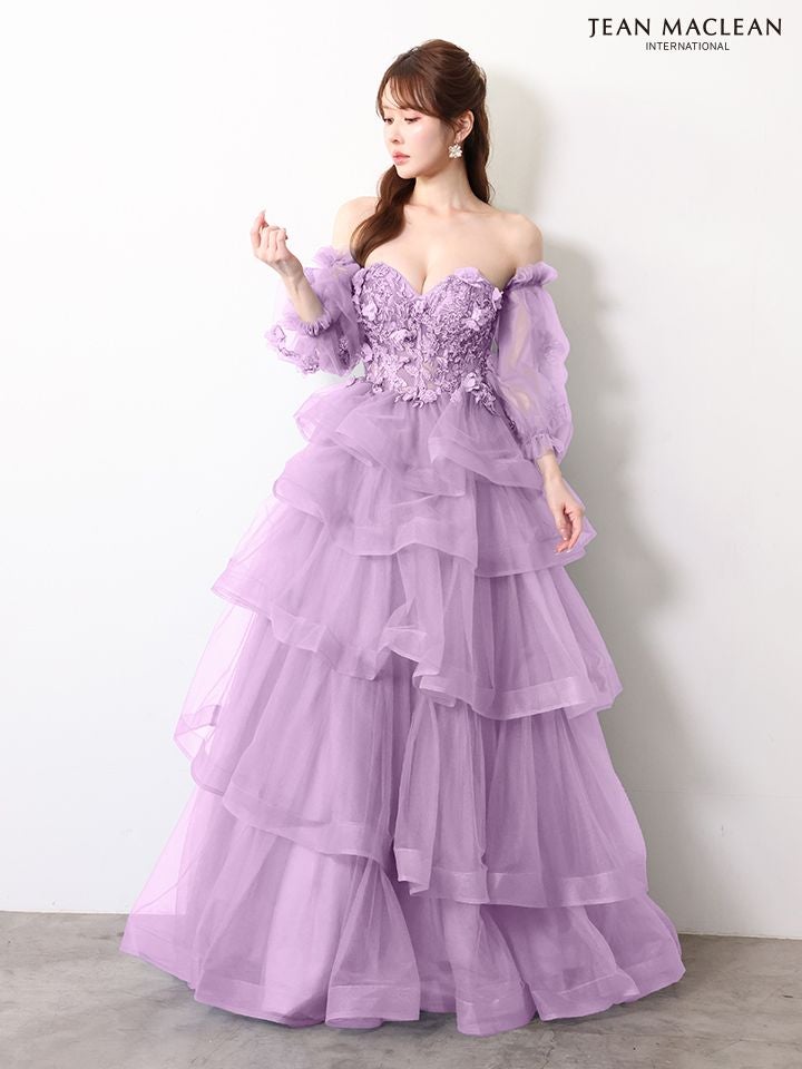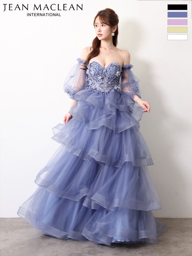 他の画像を見る ティアードフリルで華やかに♡ 予約商品【4月下旬入荷予定】[JEANMACLEAN/ジャンマクレーン] 高級 ブランド バースデー Aラインロングドレス 谷間 パフスリーブ付き ベア 2way 3Dフラワー スパンコール ティアード フリル ¥ 63,800 税込 お気に入りに追加