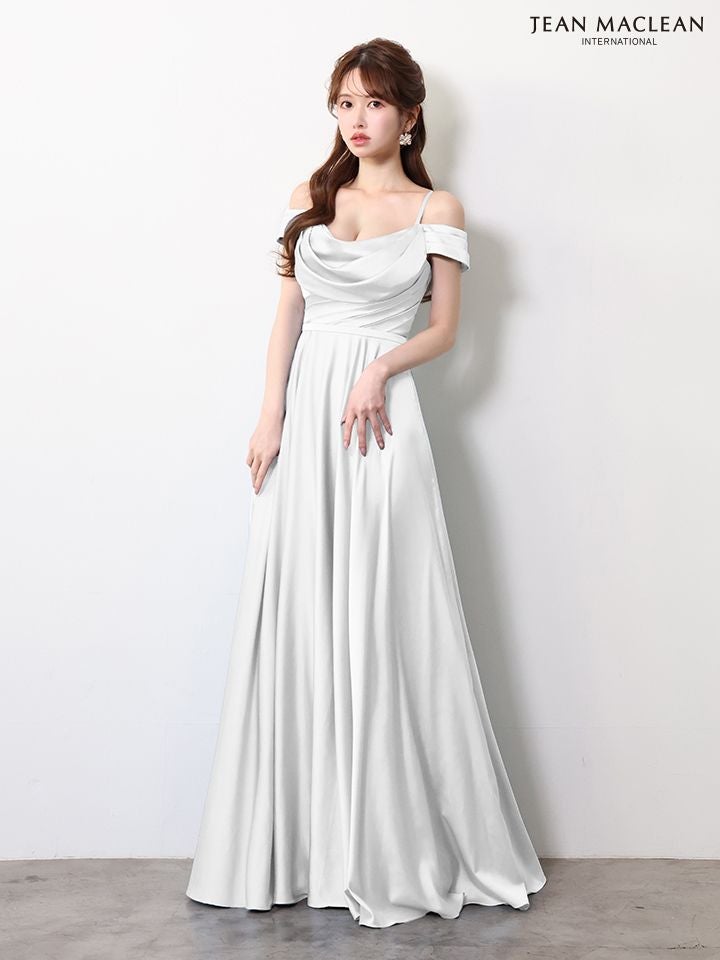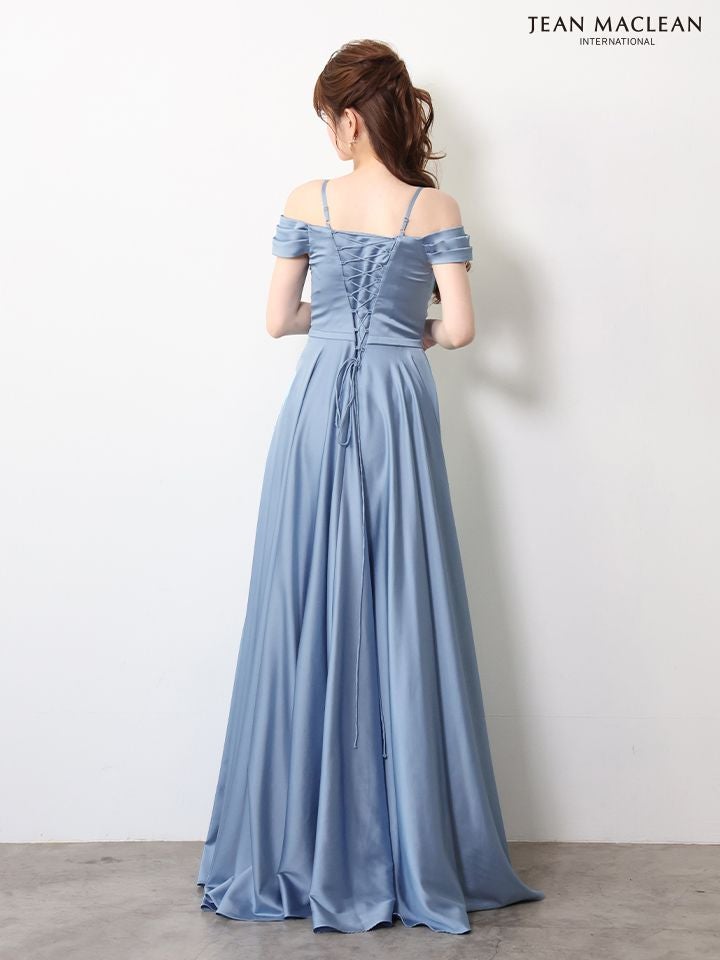 他の画像を見る サテンが美しさを引き上げてくれる♡ 予約商品【4月下旬入荷予定】[JEANMACLEAN/ジャンマクレーン] 高級 ブランド バースデー Aラインロングドレス 肩あき ワンカラー バックレースアップ サテン プリーツ ¥ 37,400 税込 お気に入りに追加