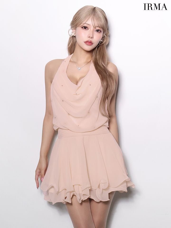 他の画像を見る 重なったフリルで可愛く細見え♡ 予約商品【4月下旬入荷予定】[IRMA/イルマ] 高級 ブランド Aラインミニドレス 谷間 ホルターネック ドレープ 背中魅せ シフォン フリル ¥ 29,480 税込 お気に入りに追加