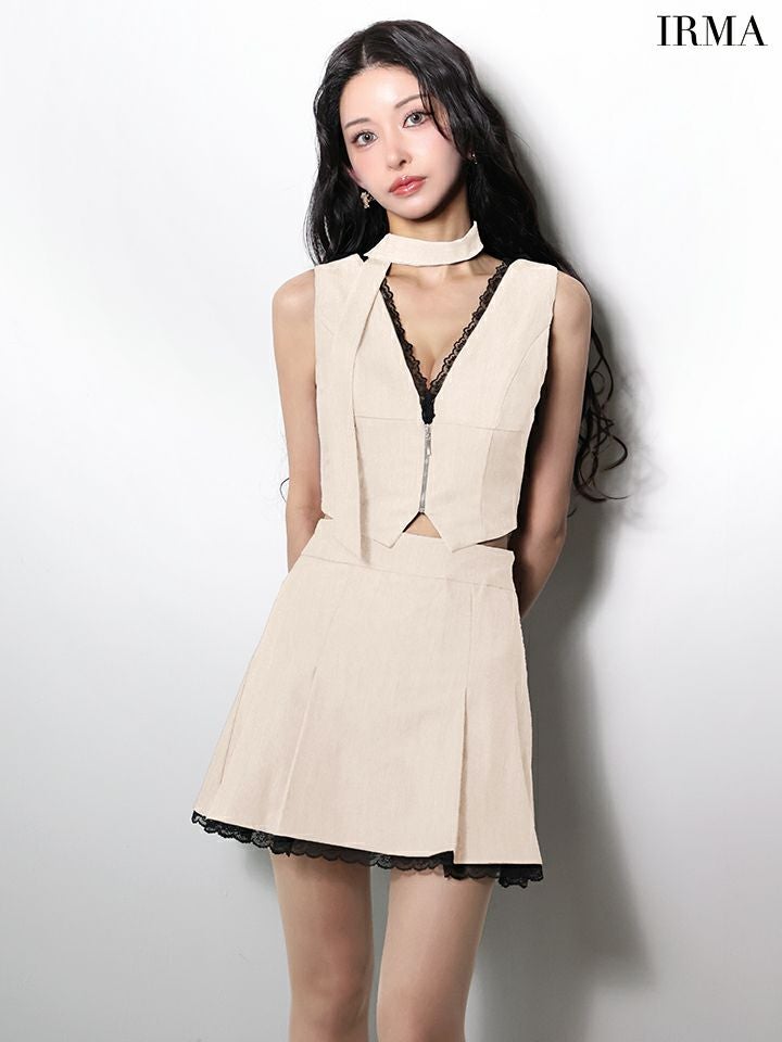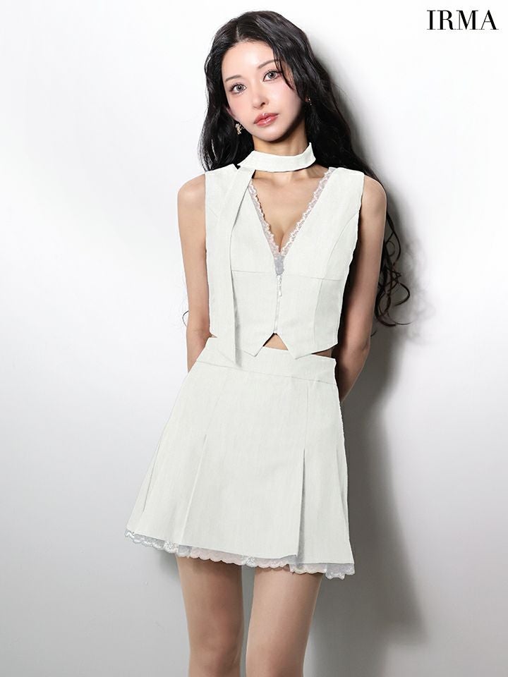 他の画像を見る 今っぽさ溢れるトレンドスタイルに♡ [IRMA/イルマ] 高級 ブランド Aラインミニドレス 谷間 セットアップ ノースリーブ ジップ レース ストール付き ¥ 29,480 税込 お気に入りに追加
