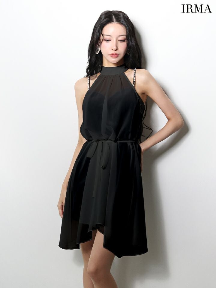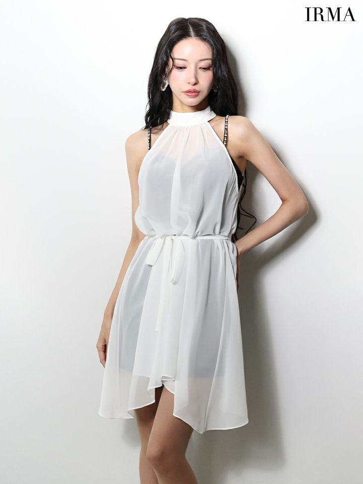 他の画像を見る シフォンが女性らしさを演出♡ [IRMA/イルマ] 高級 ブランド Aラインミニドレス セットアップ 2way ホルターネック キャミソール ウエストリボン シフォントップス ¥ 29,480 税込 お気に入りに追加