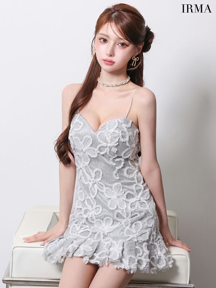 他の画像を見る フェミニンなオーラを纏う♡ [Angel-R/エンジェルアール] 高級 ブランド タイトミニドレス 谷間 キャミソール ハートカット パフスリーブ付き ウエストリボン フラワー刺繍 ¥ 32,780 税込 お気に入りに追加