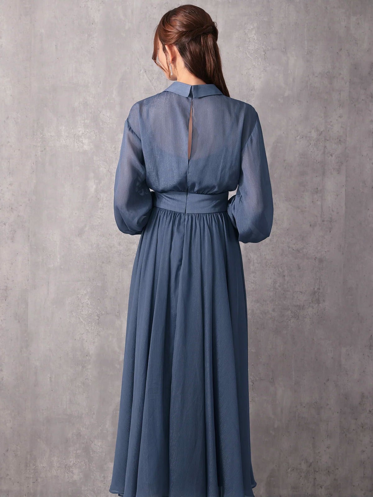 他の画像を見る 清楚で上品な印象に♡ [Veautt/ヴュート] 高級 ブランド Aラインロングドレス 長袖 襟付き ウエストマーク シフォン 大人 ワンカラー ¥ 32,780 税込 お気に入りに追加