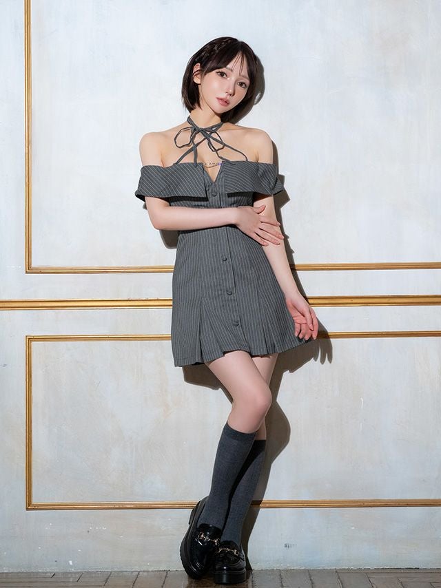 他の画像を見る 大人の甘さと上品さを両立♡ [Angel-R/エンジェルアール] 高級 ブランド Aラインミニドレス 谷間 オフショルダー ストライプ柄 バストチャーム プリーツ リボン (せな着用) ¥ 28,380 税込 お気に入りに追加