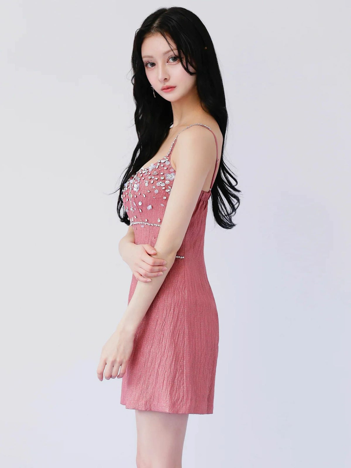 他の画像を見る ビジューが煌めく美しいデザイン♡ [Angel-R/エンジェルアール] 高級 ブランド タイトミニドレス 谷間 キャミソール ウエストカット クロスネック メッシュ ビジュー ラメ ¥ 30,580 税込 お気に入りに追加