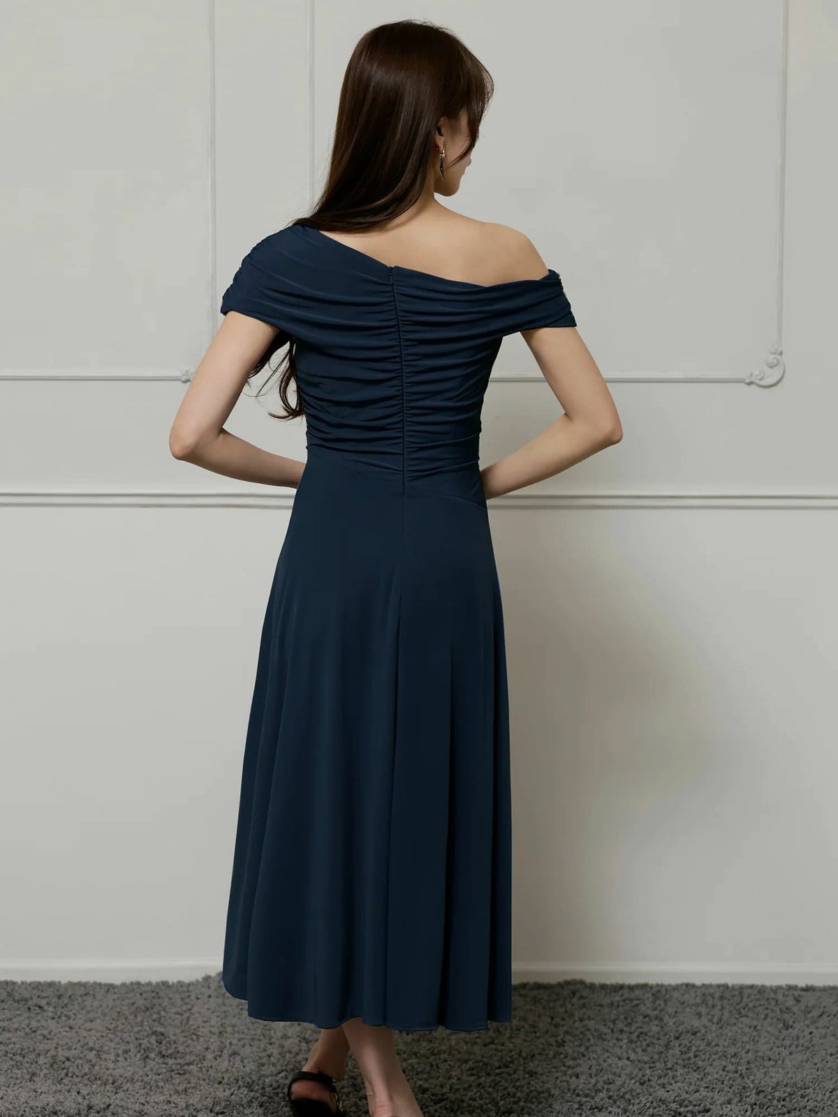 他の画像を見る エレガントな大人女性に♡ [Veautt/ヴュート] 高級 ブランド Aライン 膝丈ドレス ワンショルダー アシンメトリー 大人 ドレープ (せな着用) ¥ 32,780 税込 お気に入りに追加