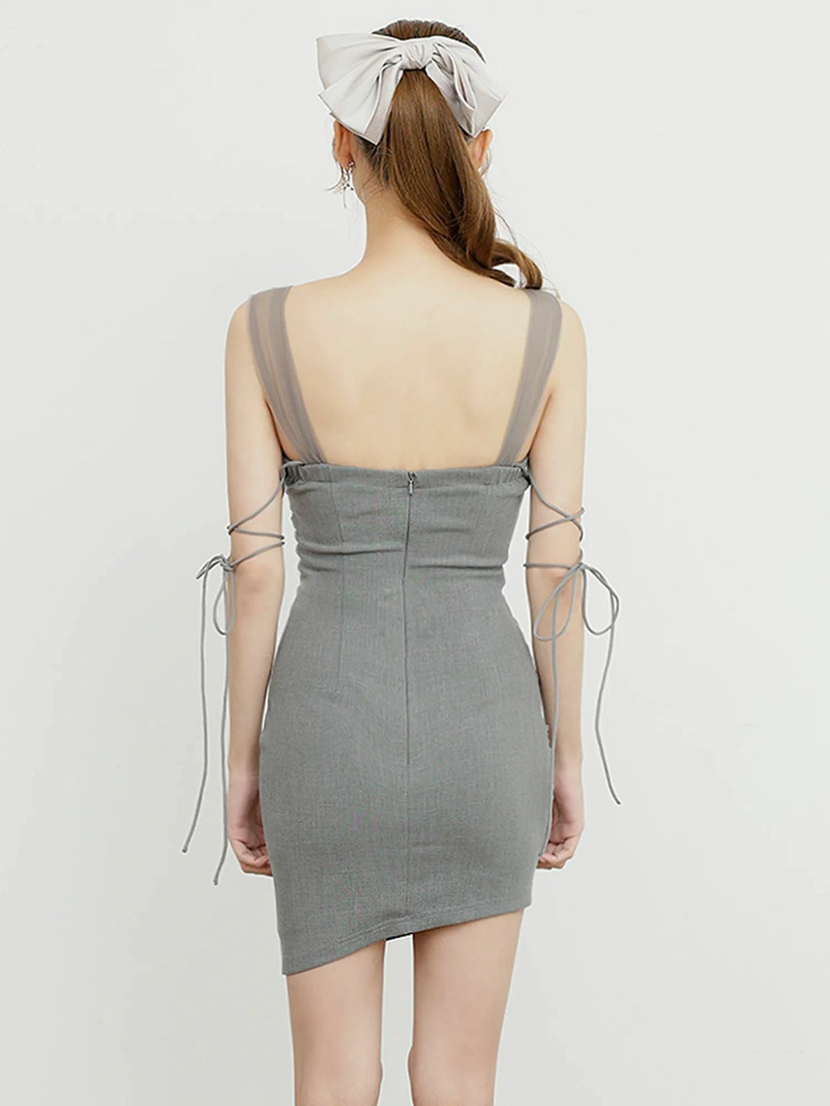 他の画像を見る スリーブリボンで差をつける♡ [Angel-R/エンジェルアール] 高級 ブランド タイトミニドレス ノースリーブ スリーブリボン サイドシアー ギャザー アシメデザイン ¥ 26,180 税込 お気に入りに追加