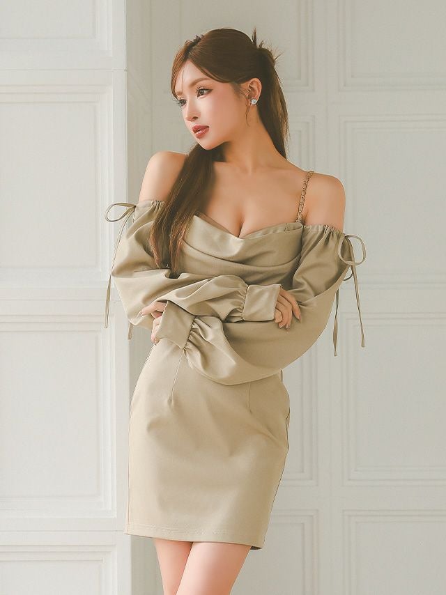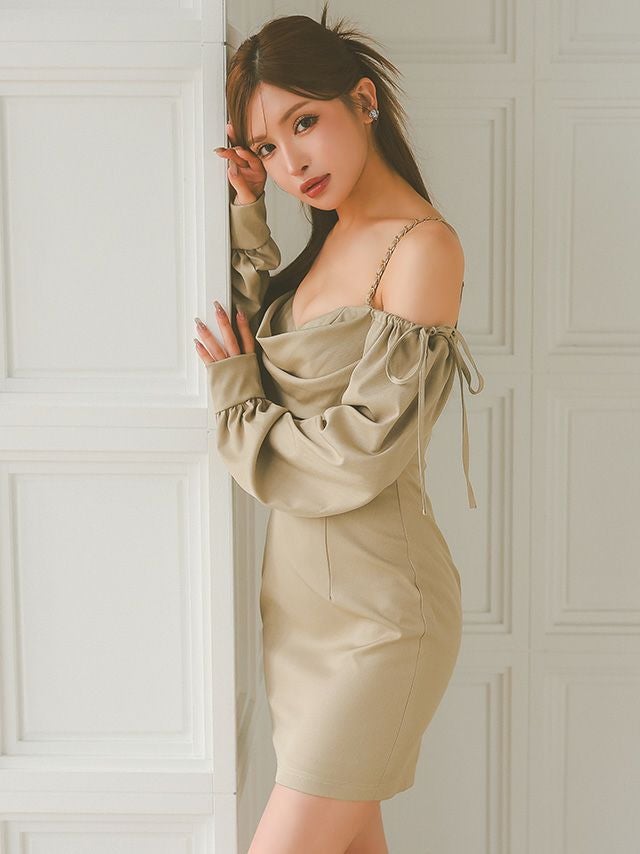 他の画像を見る 大人の色気を引き立てる♡ [Angel-R/エンジェルアール] 高級 ブランド タイトミニドレス 肩出し 二の腕カバー 長袖 リボン ショルダーチェーン バストドレープデザイン (ゆんころ着用) ¥ 29,480 税込 お気に入りに追加