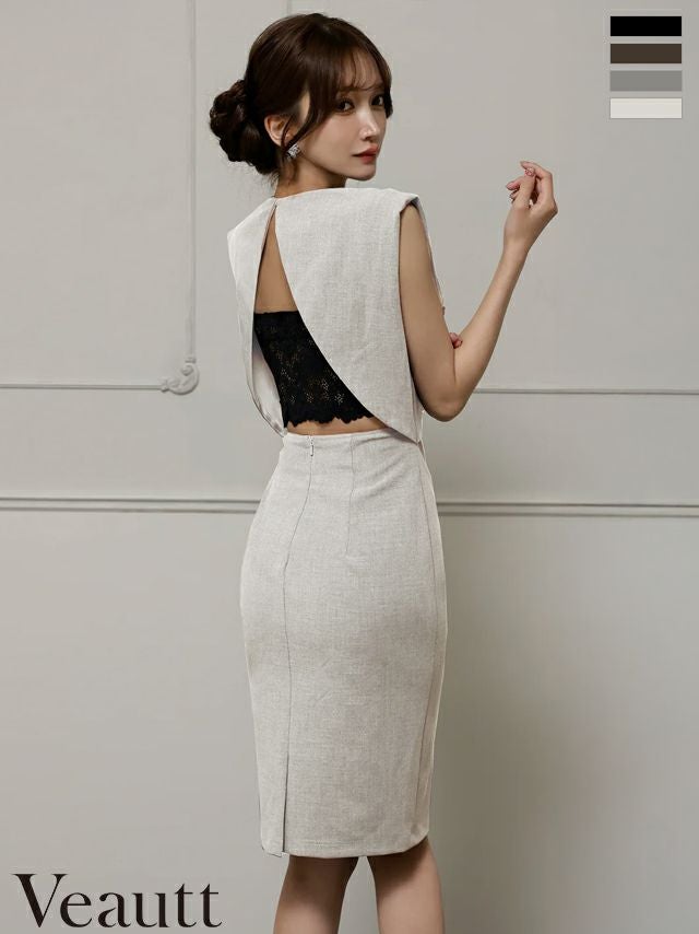 他の画像を見る 360度どこから見ても色気溢れる♡ [Veautt/ヴュート] 高級 ブランド タイト膝丈ドレス ノースリーブ 背中魅せ ウエストカット レースインナー付き ¥ 29,480 税込 お気に入りに追加