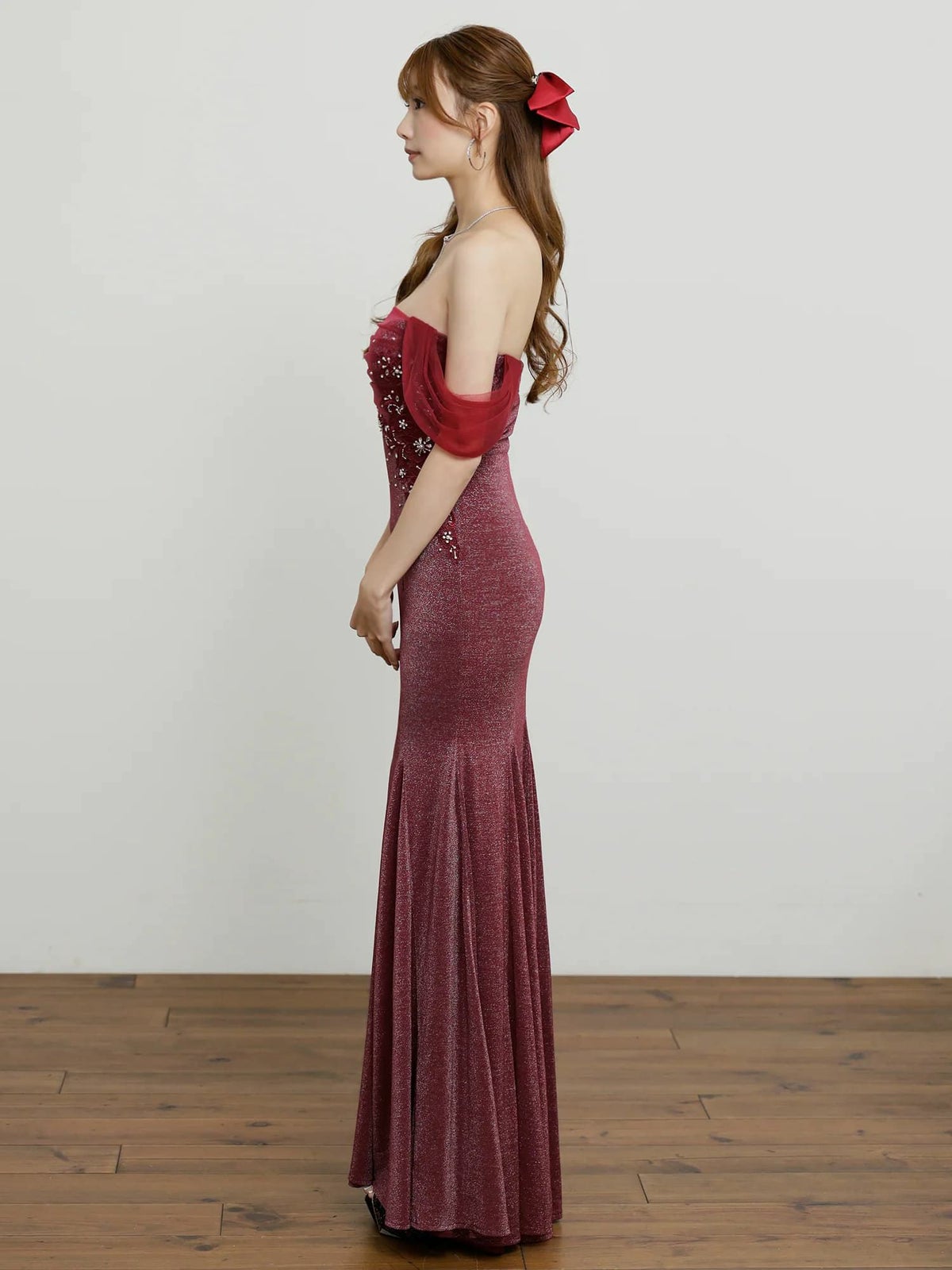 他の画像を見る ラメ×フラワー刺繍でゴージャスに♡ [Angel-R/エンジェルアール] 高級 バースデー タイトロングドレス 谷間 マーメイド オフショルダー バストシースルー フラワー刺繍 ビジュー ラメ ¥ 39,380 税込 お気に入りに追加