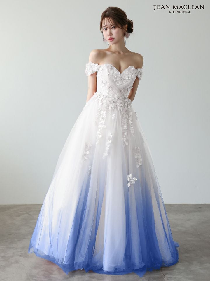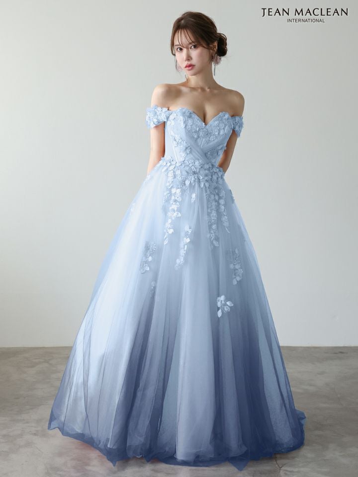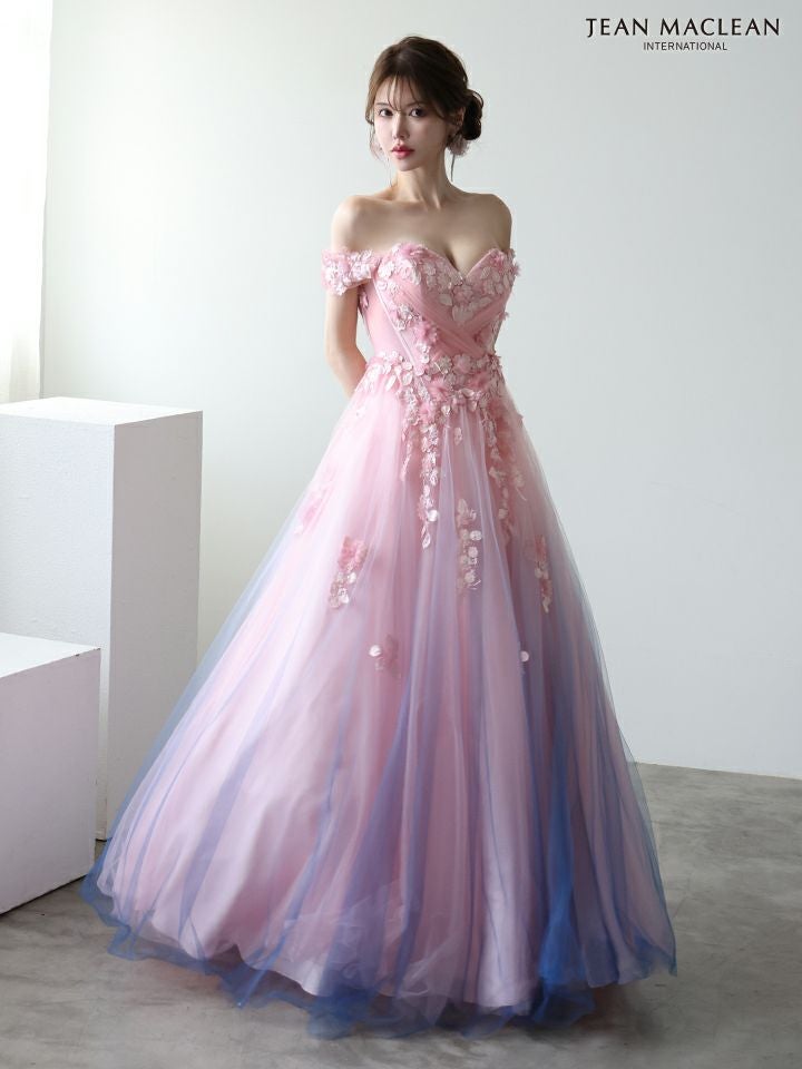 他の画像を見る グラデーションのチュールが美しい♡ [JEANMACLEAN/ジャンマクレーン] 高級 ブランド バースデー Aラインロングドレス 谷間 オフショルダー ハートカット 立体フラワー グラデーション チュール ¥ 63,800 税込 お気に入りに追加