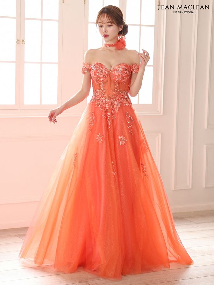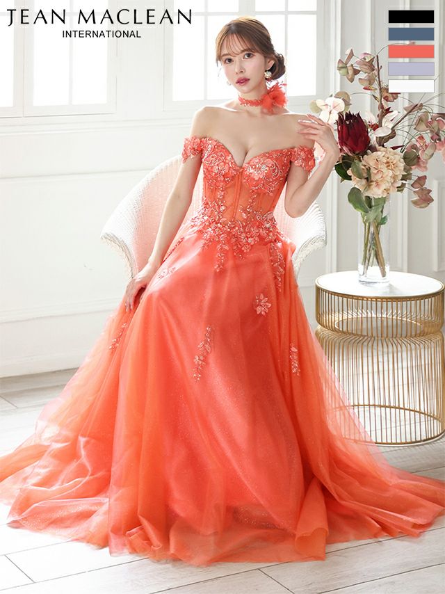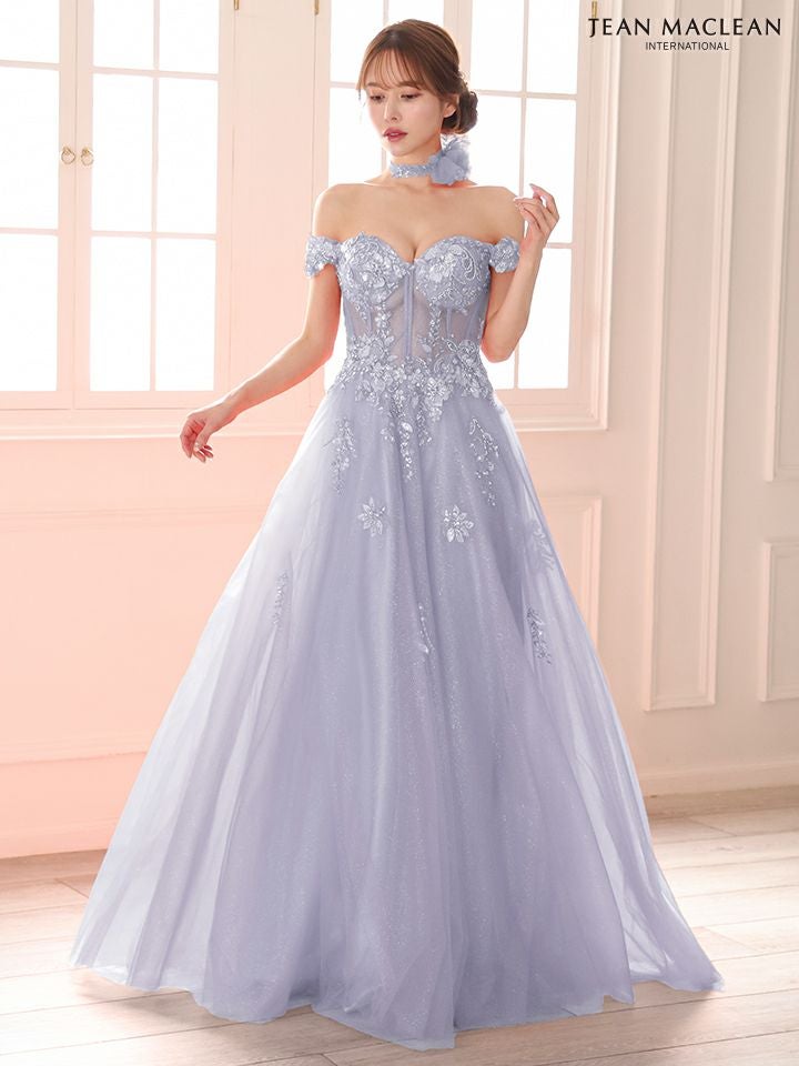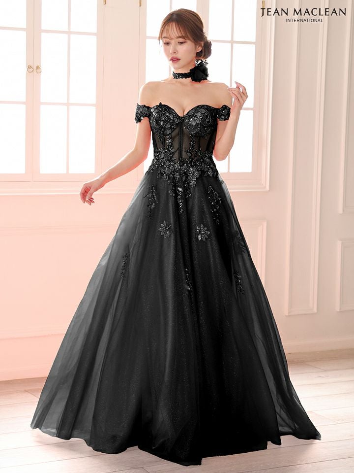 他の画像を見る 圧倒的な存在感を演出♡ [JEANMACLEAN/ジャンマクレーン] 高級 ブランド バースデー Aラインロングドレス 谷間 オフショルダー スパンコール刺繍 シアーコルセット風 チュール チョーカー付き ¥ 53,900 税込 お気に入りに追加
