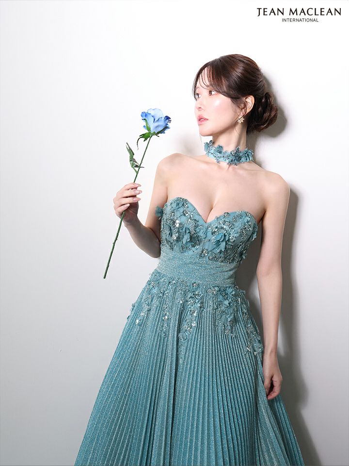 他の画像を見る ゴージャスなオーラを纏う♡ [JEANMACLEAN/ジャンマクレーン] 高級 ブランド バースデー Aラインロングドレス 谷間 ベアデザイン 立体フラワー ラメニット プリーツ チョーカー付き ¥ 53,900 税込 お気に入りに追加