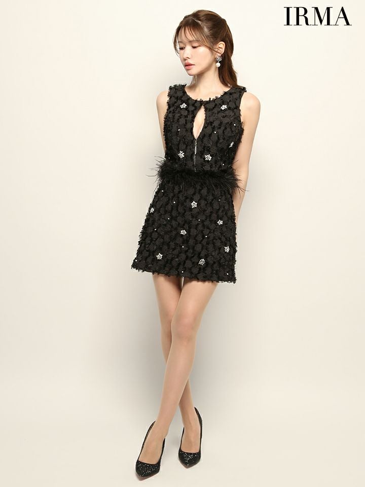 他の画像を見る 大人っぽさと女性らしさを引き立てる♡ [IRMA/イルマ] 高級 ブランド タイトミニドレス 谷間 セットアップ ノースリーブ ジップ フリンジ ニット ビジューフェザー付き ¥ 32,780 税込 お気に入りに追加