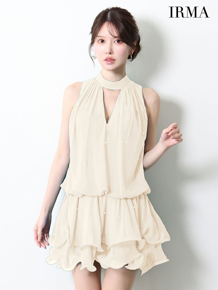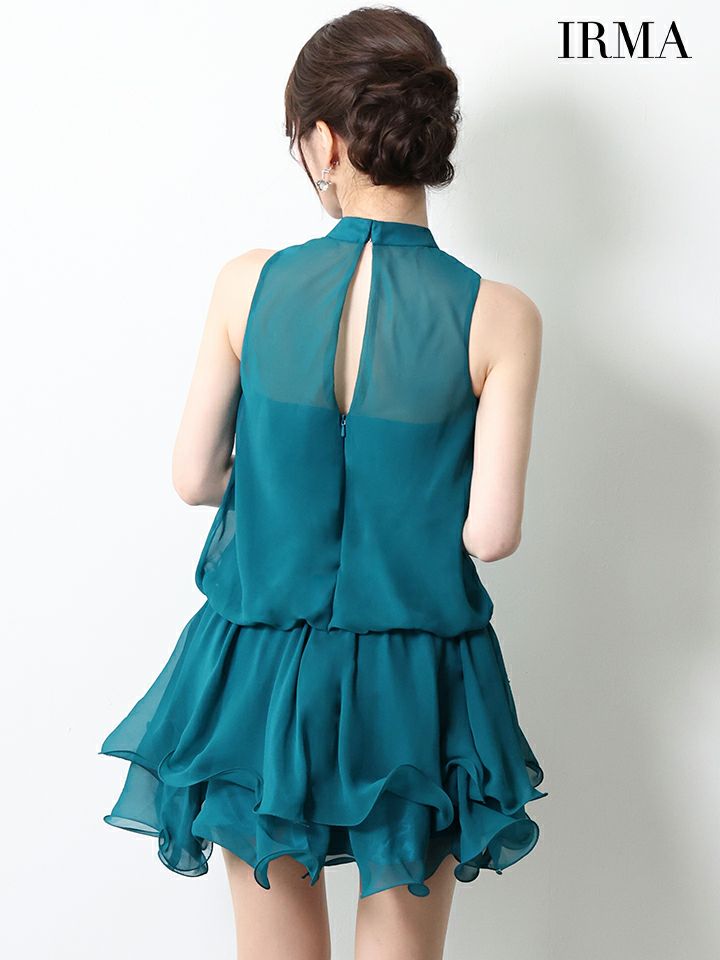 他の画像を見る カットアウトが色気を醸し出す♡ [IRMA/イルマ] 高級 ブランド Aラインミニドレス 谷間 ノースリーブ シフォン ティアード フリル カットアウト ¥ 29,480 税込 お気に入りに追加