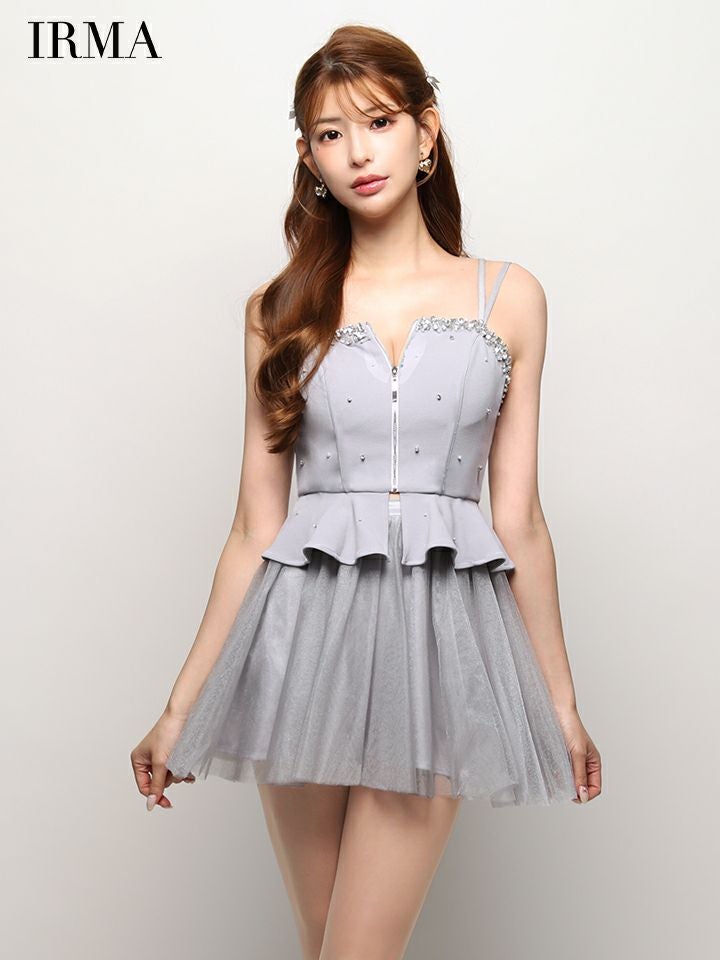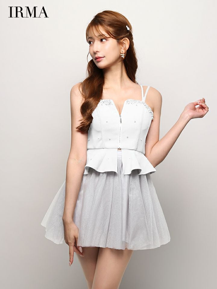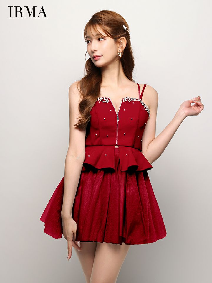 他の画像を見る 可愛くスタイルアップを叶える♡ [IRMA/イルマ] 高級 ブランド Aラインミニドレス 谷間 キャミソール セットアップ ペプラム ジップ ビジュー シフォン ¥ 30,580 税込 お気に入りに追加