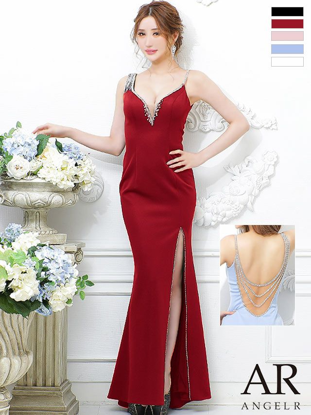 4. [Angel-R/エンジェルアール] 高級Vネックキャミソールバックビジュータイトロングドレス