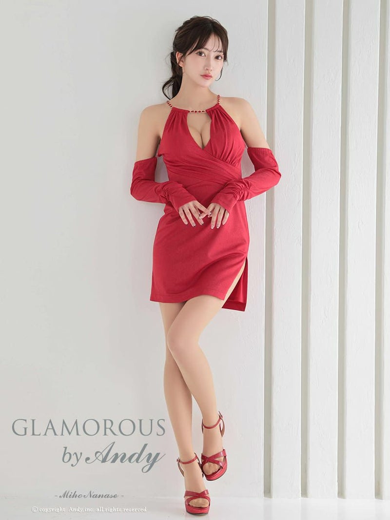 キャバドレス AndyGLAMOROUS アンディグラマラス ホルターネック バストカット スリット 2way 長袖 谷間魅せ タイトミニドレス