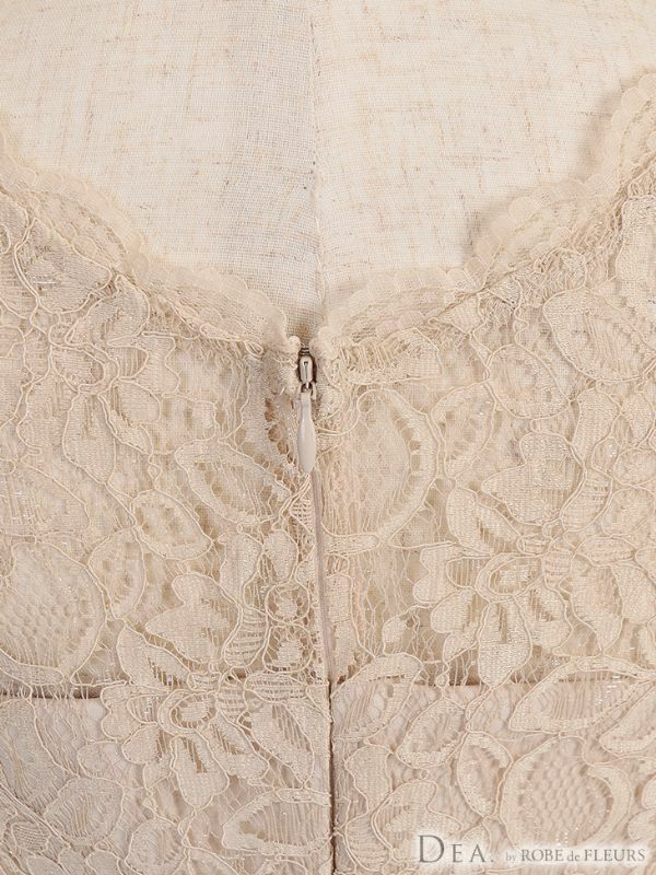上品なレース使いがエレガントな1着☆ [DEA.byROBEdeFLEURS/ディアバイローブドフルール] 高級半袖フラワーレースハイウエスト切替膝丈タイトドレス