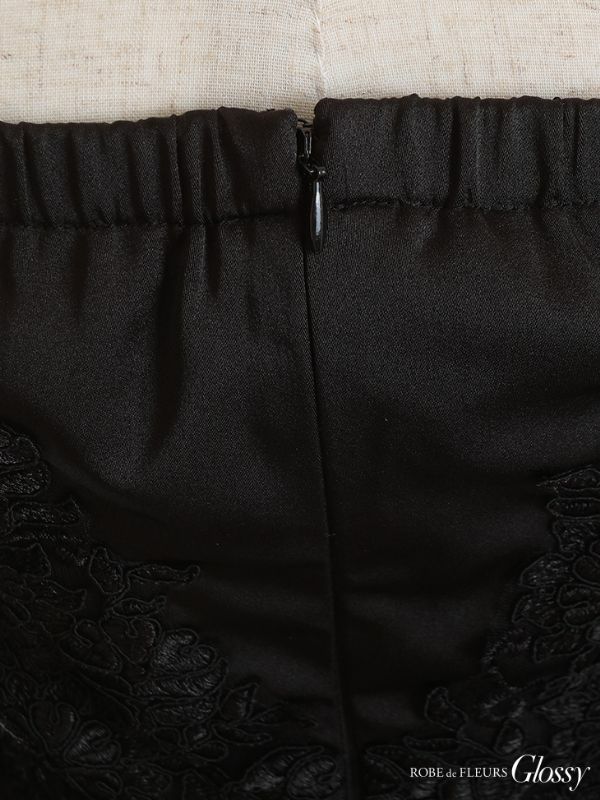 繊細なレースと煌めくビジューが高級感☆ [ROBEdeFLEURSGlossy/ローブドフルールグロッシー] 高級 オフショルダー ペプラム バストシースルー 谷間魅せ タイトミニドレス