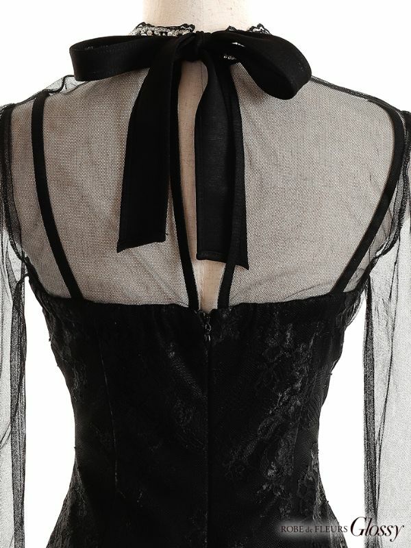 6. [ROBEdeFLEURSGlossy/ローブドフルールグロッシー] 高級チュール長袖 袖ありハイネックシースルーデザインタイトミニドレス