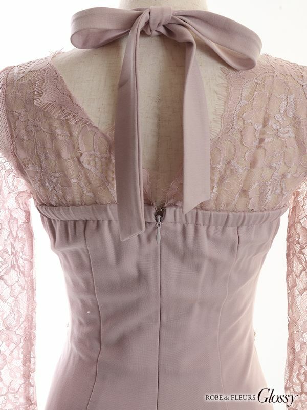 5. [ROBEdeFLEURSGlossy/ローブドフルールグロッシー] 高級2WAYホルタービジュー袖ありレースタイトミニドレス