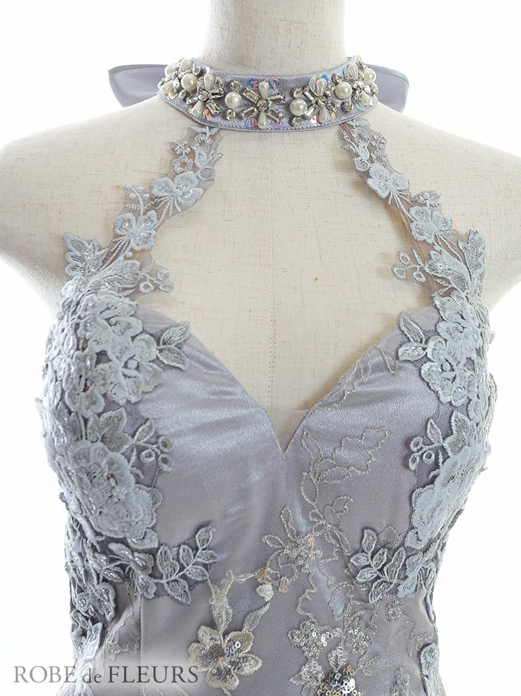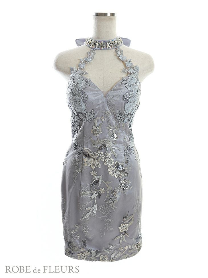 4. [ROBEdeFLEURS/ローブドフルール] 高級刺繍レース×ビジューホルターネックミニドレス