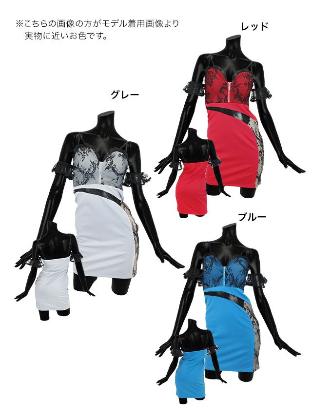 肩あきフロントジップブラックレース切替タイトミニドレスのカラーバリエーション