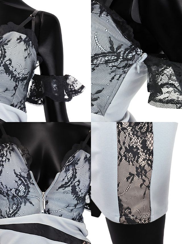 肩あきフロントジップブラックレース切替タイトミニドレスの商品詳細1