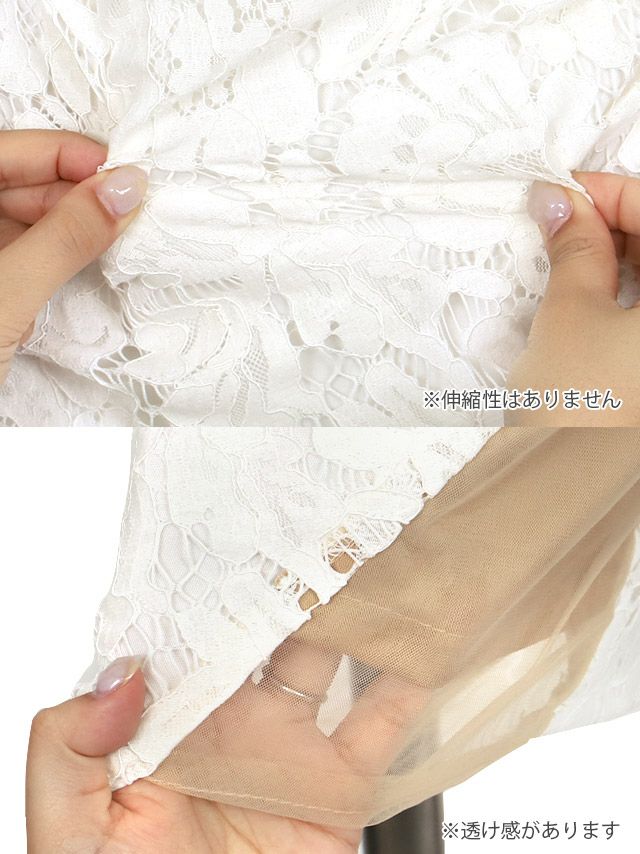 ワンショルダーカットアウトビジューサイドヌーディーシアー切り替え総レースタイトミニドレスの商品詳細画像2