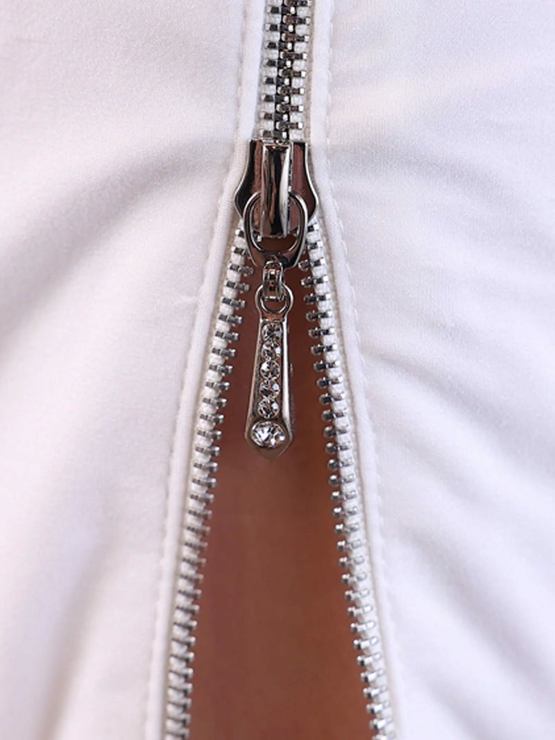 3. [Veautt/ヴュート] 高級 ワンショルダー ウエストタック ビジュー ファスナースリット タイト 膝丈ドレス