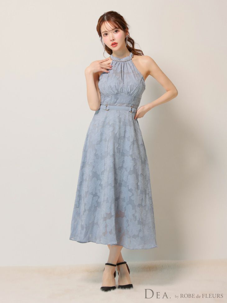 5. [DEA.byROBEdeFLEURS/ディアバイローブドフルール] 高級ホルターネックウエストベルトレースシンプルAラインロングドレス