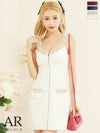 特別感のあるガーリードレス☆ SALE [Angel-R/エンジェルアール] 高級ビジュー付き ノースリーブ フロントジップ ツイード フレアミニドレス
