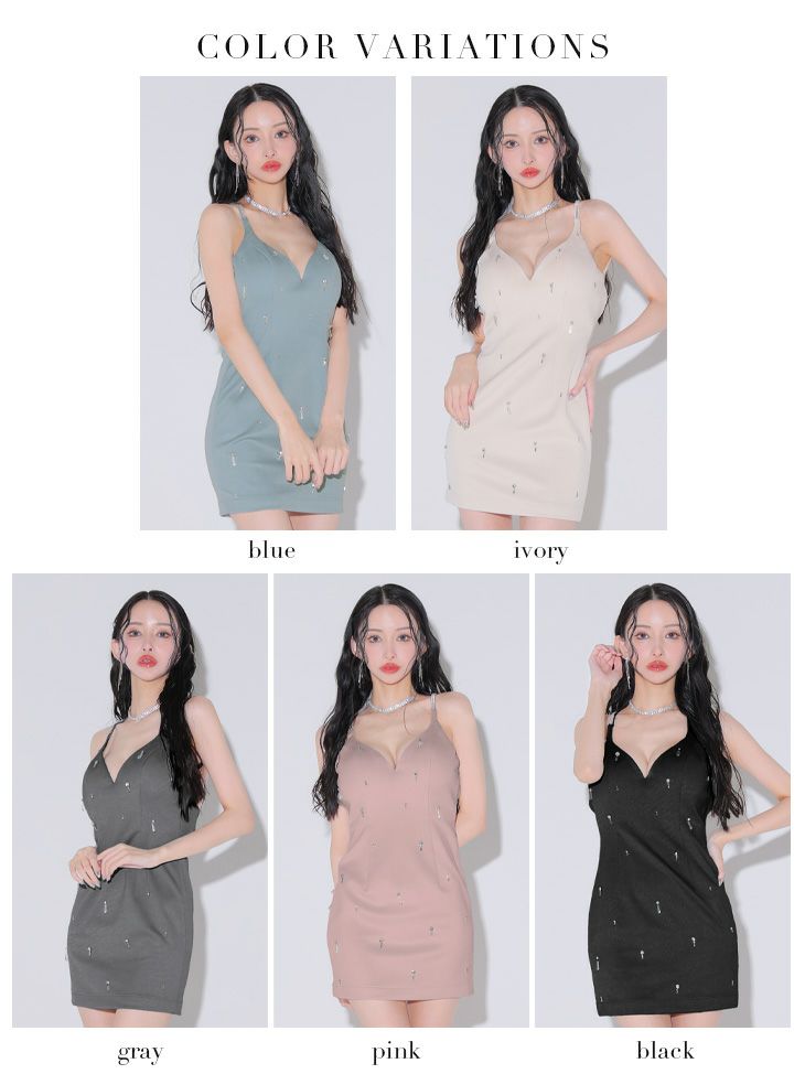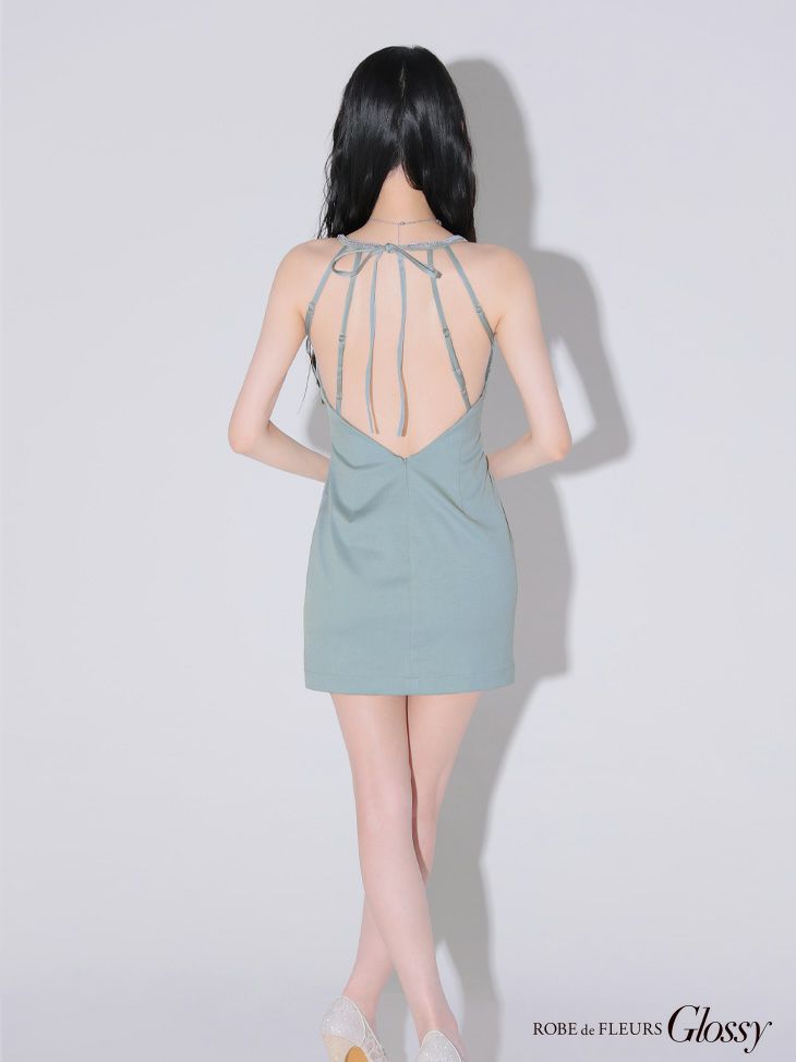 5. 予約商品【2月下旬入荷予定】[ROBEdeFLEURSGlossy/ローブドフルールグロッシー] 高級ワンカラーエレガントビジューホルターネックタイトミニドレス