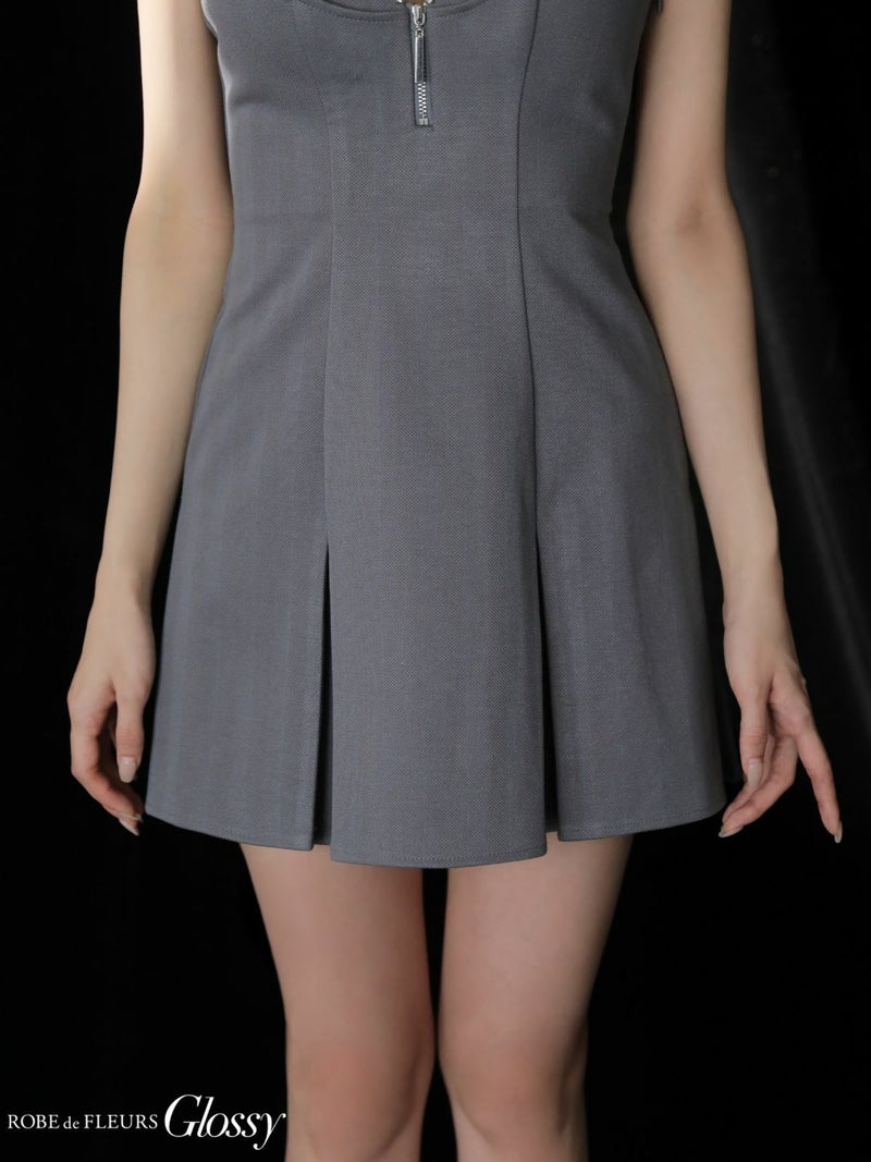 フレアシルエットで女性らしさを引き立てる♡ [ROBEdeFLEURSGlossy/ローブドフルールグロッシー] 高級 ブランド Aラインミニドレス 谷間 キャミソール 背中魅せ Vカット ジップ ビジュー プリーツ