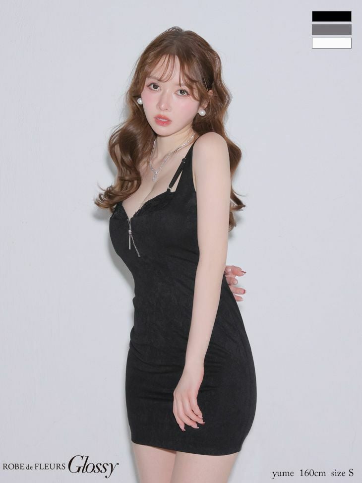 Glossyらしいセクシーデザイン♡ [ROBEdeFLEURSGlossy/ローブドフルールグロッシー] 高級 ブランド タイトミニドレス 谷間 キャミソール 背中魅せ バックレース ジップ