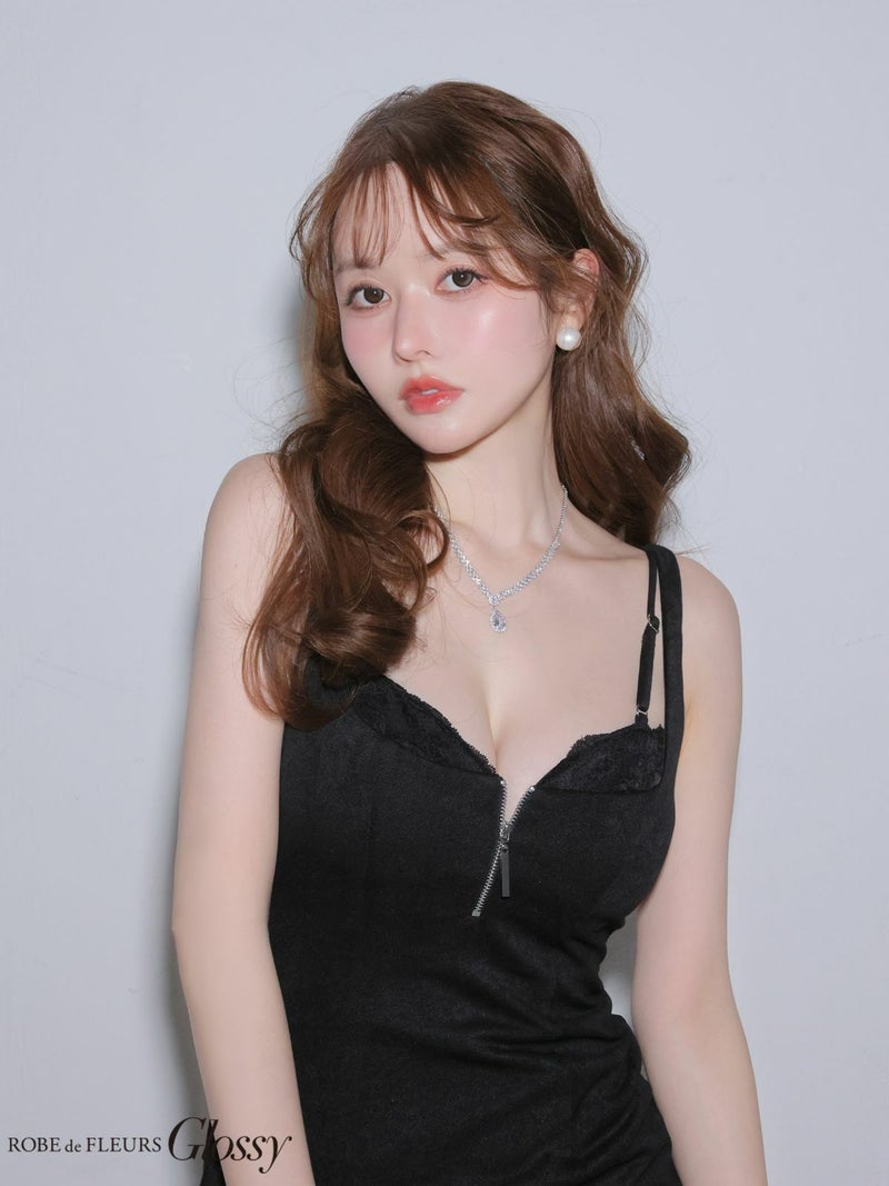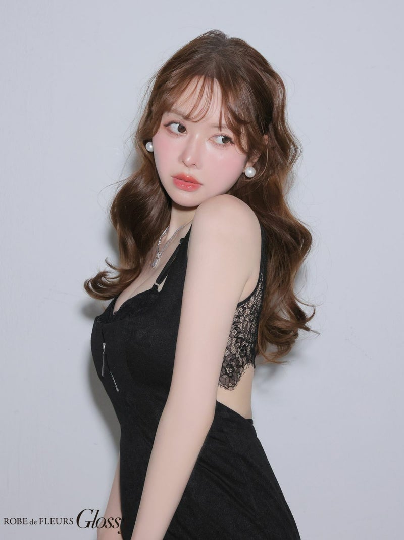 大人の色気を存分にアピール♡ [ROBEdeFLEURSGlossy/ローブドフルールグロッシー] 高級 ブランド タイトミニドレス 谷間 キャミソール 背中魅せ バックレース ジップ
