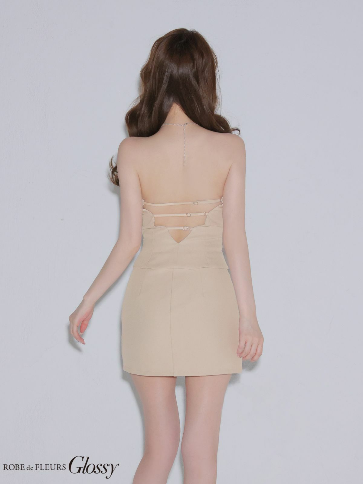 取り外しできる肩紐付き♡ [ROBEdeFLEURSGlossy/ローブドフルールグロッシー] 高級 ブランド タイトミニドレス 谷間 セットアップ ベア 背中魅せ ジップ サイドウエストベルト