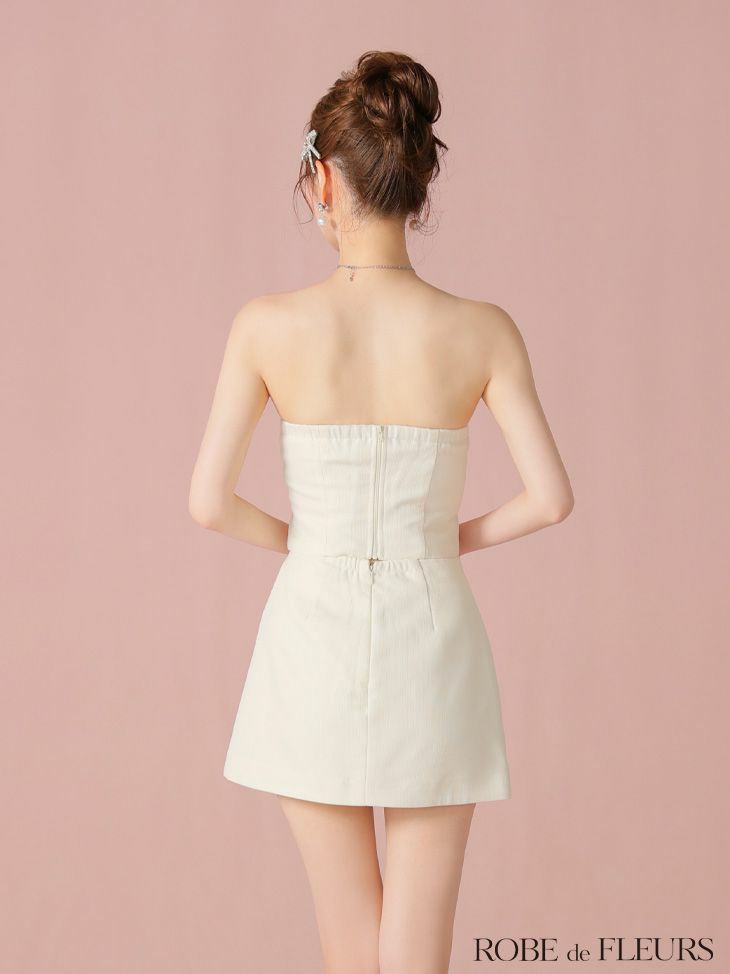 5. [ROBEdeFLEURS/ローブドフルール] 高級 2way キャミソール バストカット リボン ビジュー セットアップ 谷間魅せ タイトミニドレス