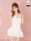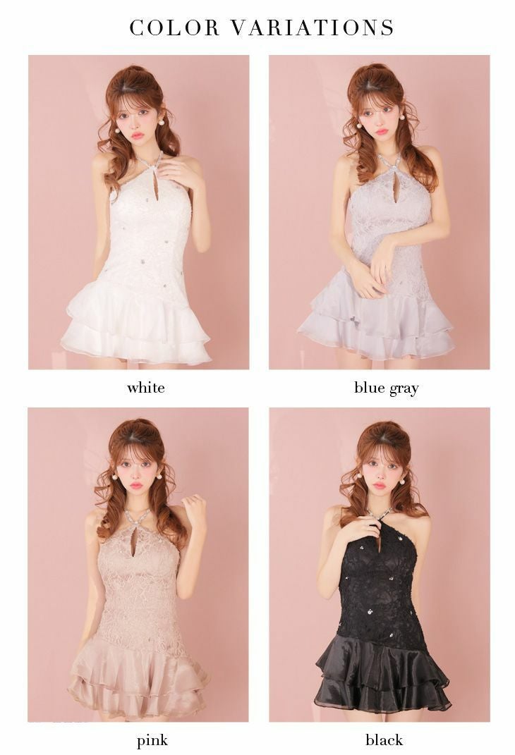 ふんわりシルエットで魅了する♡ [ROBEdeFLEURS/ローブドフルール] 高級 ブランド Aラインミニドレス 谷間 ホルターネック 背中魅せ フラワーレース バストカット ビジュー ティアード フリル