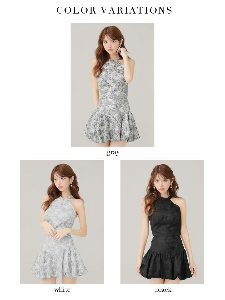 ジャガード素材で高級感溢れる♡ [ROBEdeFLEURS/ローブドフルール] 高級 ブランド Aラインミニドレス セットアップ ホルターネック 背中魅せ バックリボン 花柄ジャガード バルーンスカート