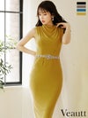 4. SALE [Veautt/ヴュート] 高級ウエストビジューバックVカットノースリーブ膝丈ワンピースタイトドレス