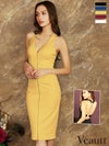 エレガントなワンカラードレス☆ SALE [Veautt/ヴュート] 高級フロントファスナーバックオープンリングホルターネック膝丈ドレス
