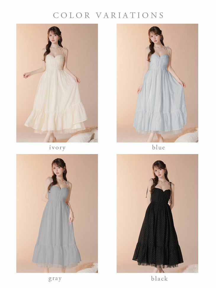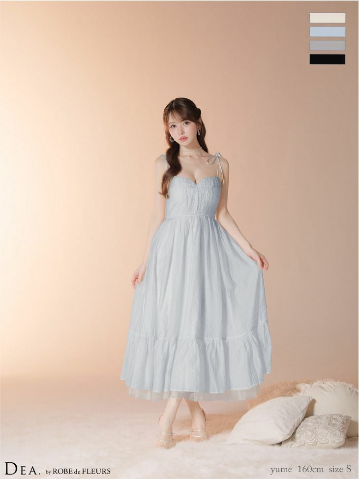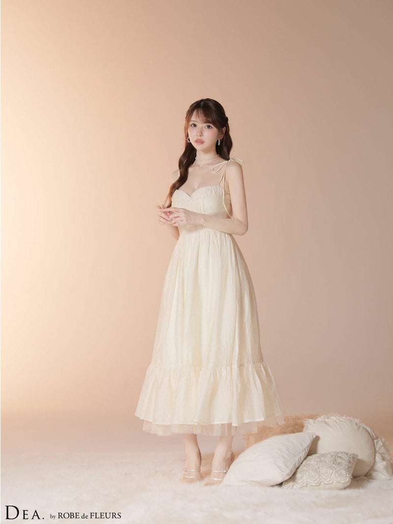 4. [DEA.byROBEdeFLEURS/ディアバイローブドフルール] 高級 ブランド ワンピース Aラインロングドレスキャミソール ショルダーリボン ハートカット ビジュー シフォン