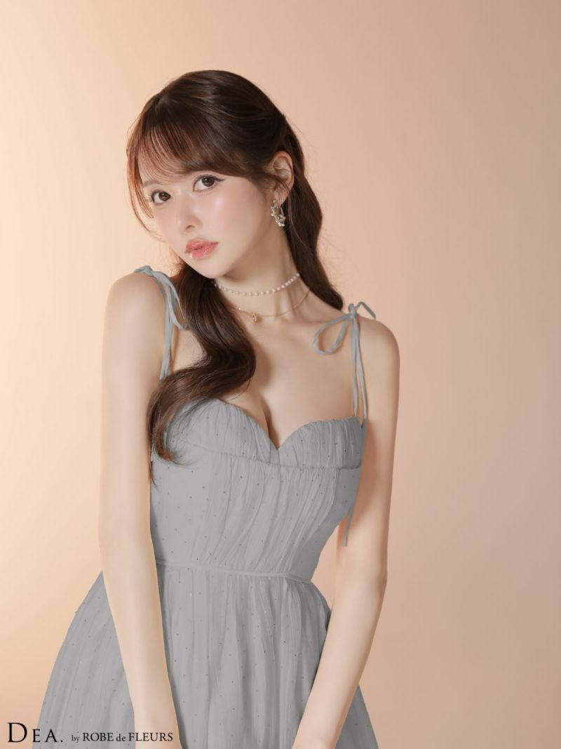 5. [DEA.byROBEdeFLEURS/ディアバイローブドフルール] 高級 ブランド ワンピース Aラインロングドレスキャミソール ショルダーリボン ハートカット ビジュー シフォン