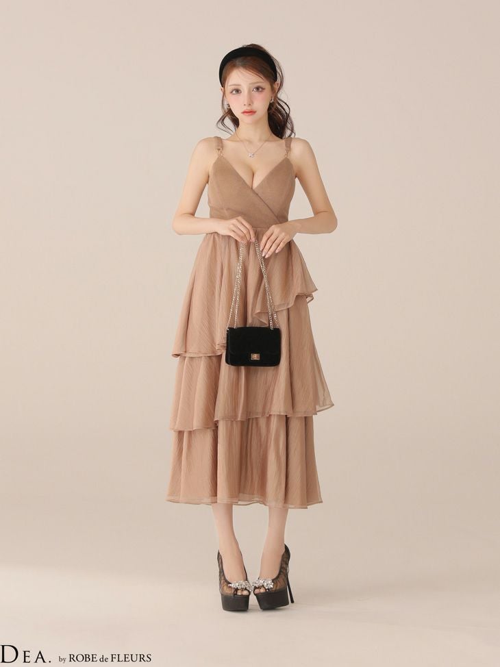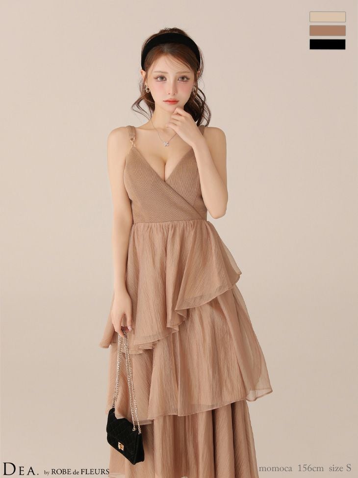 女性らしさを最大限に引き出す♡ [DEA.byROBEdeFLEURS/ディアバイローブドフルール] 高級 ブランド ワンピース Aラインロングドレス 谷間 キャミソール カシュクール風 ティアードフリル