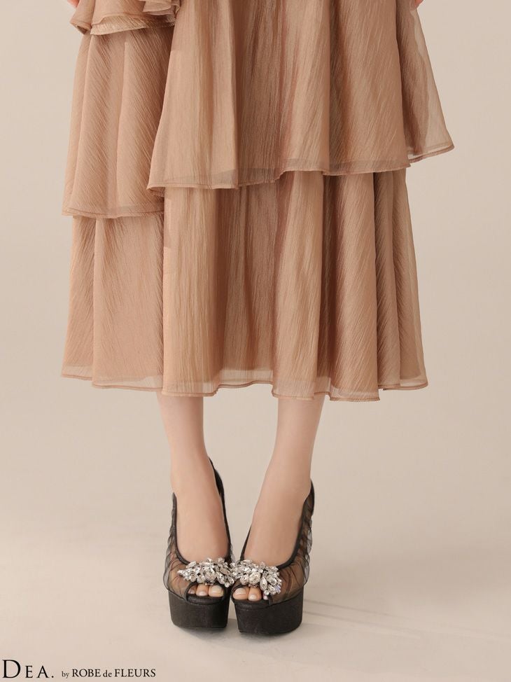 4. [DEA.byROBEdeFLEURS/ディアバイローブドフルール] 高級 ブランド ワンピース Aラインロングドレス 谷間 キャミソール カシュクール風 ティアードフリル