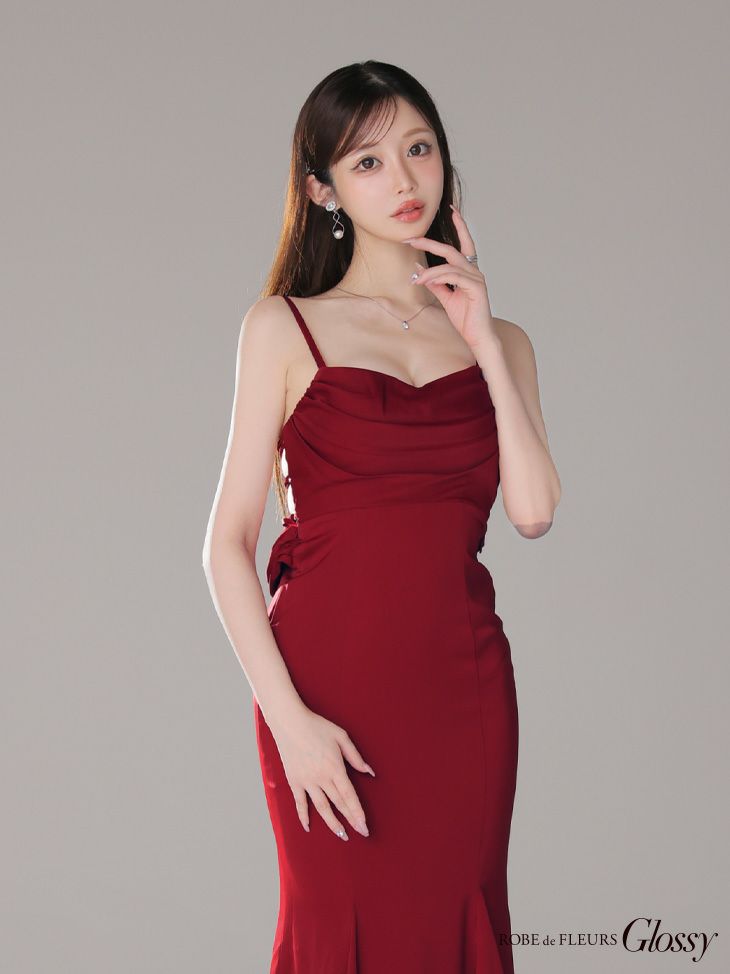 どこから見てもセクシーに♡ [ROBEdeFLEURSGlossy/ローブドフルールグロッシー] 高級キャミソールビジューチェーンサテンマーメイドタイトロングドレス