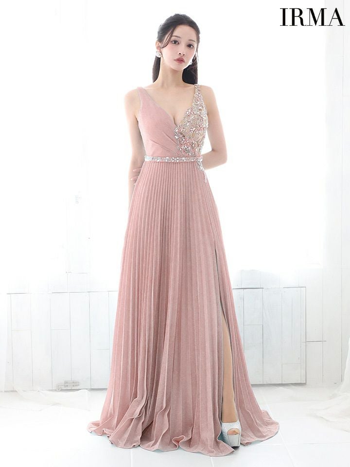 4. [IRMA/イルマ] 高級 バースデーノースリーブラメニットビジューAラインロングドレス